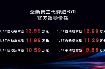 全新一代奔腾B70售9.99万起 郑州实车到店